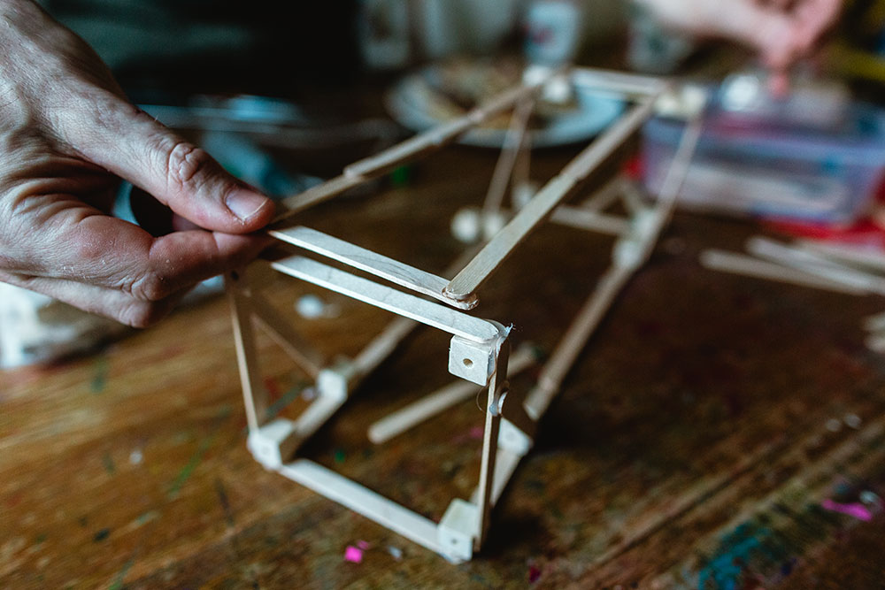 Next add 4 lollipop sticks to each length by creating triangles at each end like shown in the photo.